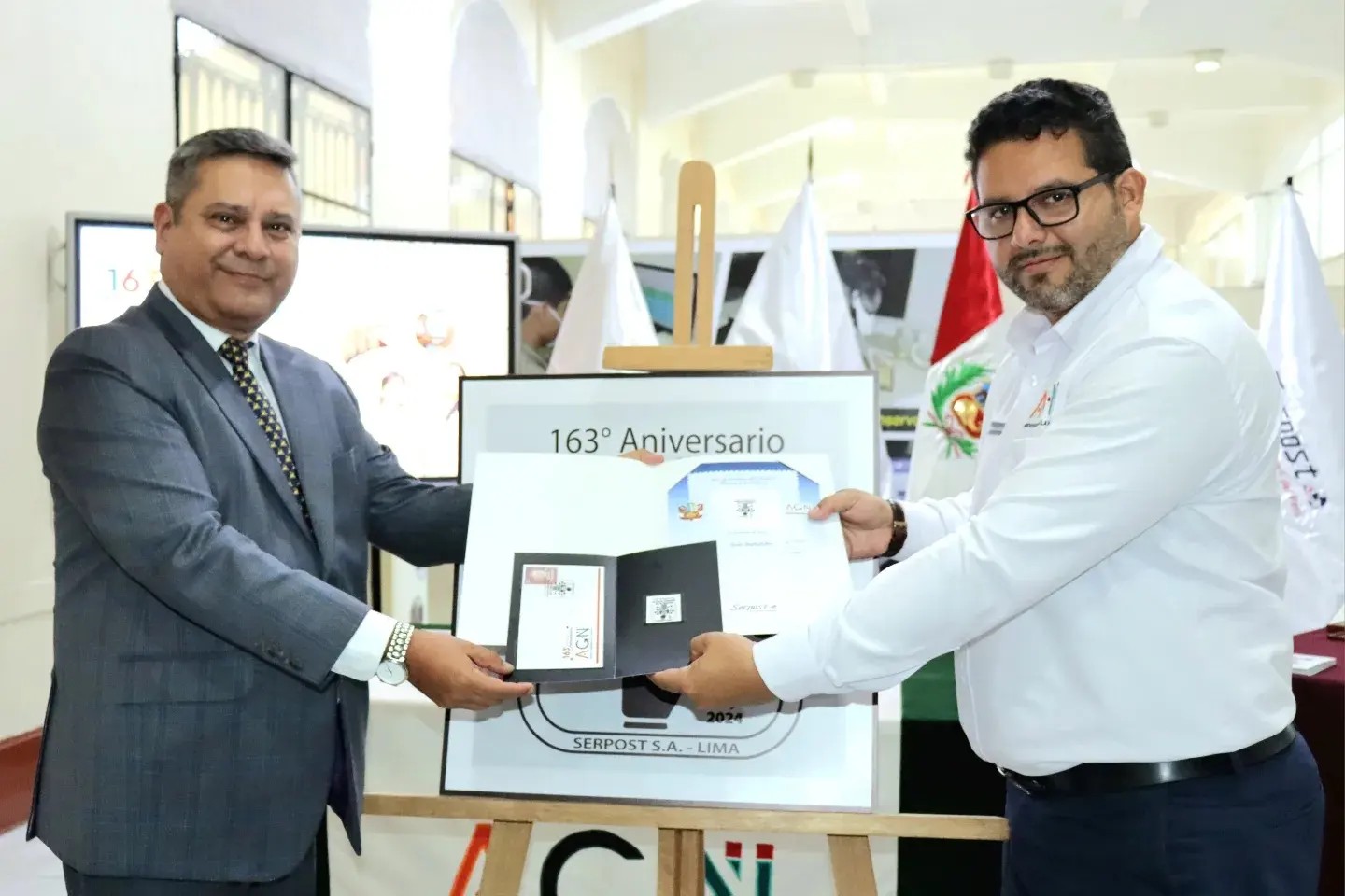 Serpost presentó hoy miércoles 15 de mayo el diseño del matasello en conmemoración por el 163.° Aniversario del Archivo General de la Nación (AGN), institución que protege el Patrimonio Documental Archivístico de la Nación.